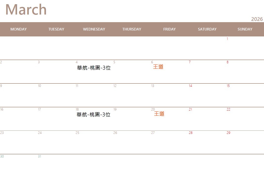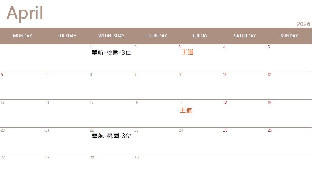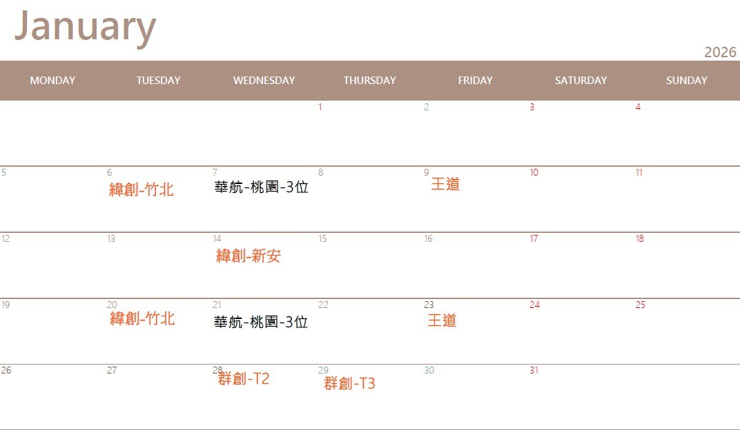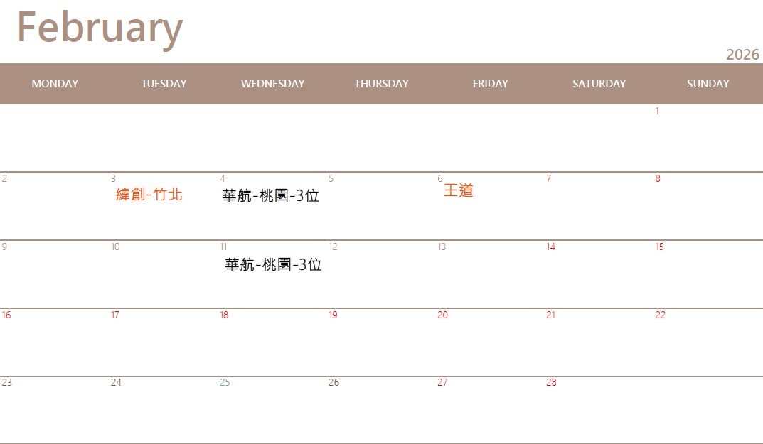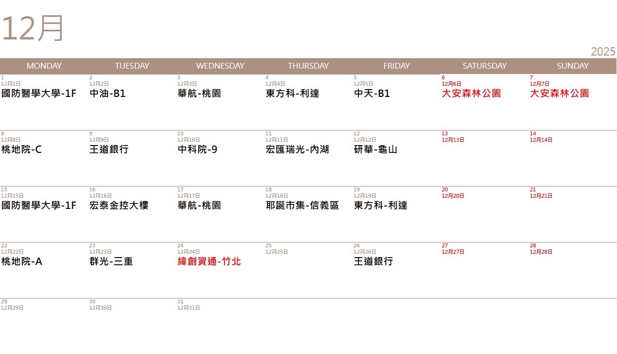 樂足跡行事曆
